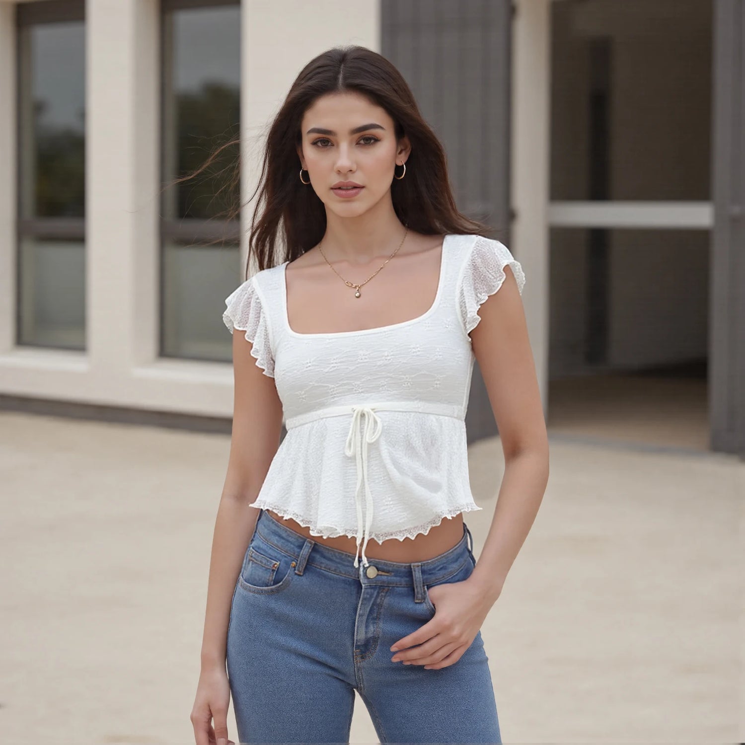 Wear it with high-waisted shorts, flowy skirts, or your favorite jeans. Add a pendant necklace or dainty earrings to finish the look. The tie-front lets you customize the fit in seconds.